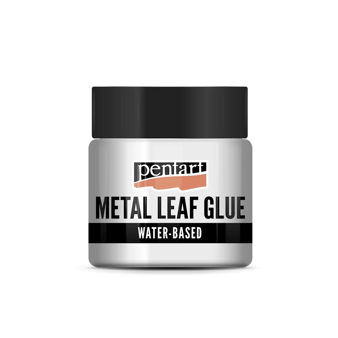 Vesiohenteinen liima kullattavaksi. Levitä ohut kerros liimaa. Kun liima muuttuu läpinäkyväksi, levitä foliohiutaleita tai lehtikultaa.
